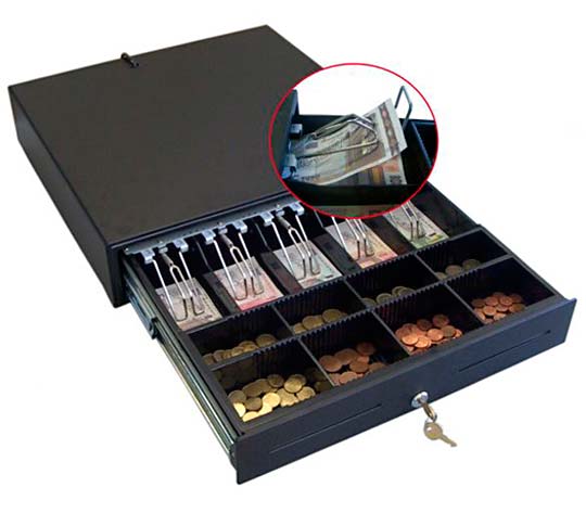 I nostri cassetti portasoldi sono molto versatili e adatti a innumerevoli modelli di registratori di cassa e misuratori fiscali, risultando utilissimi alle esigenze del piccolo o del grande negoziante.